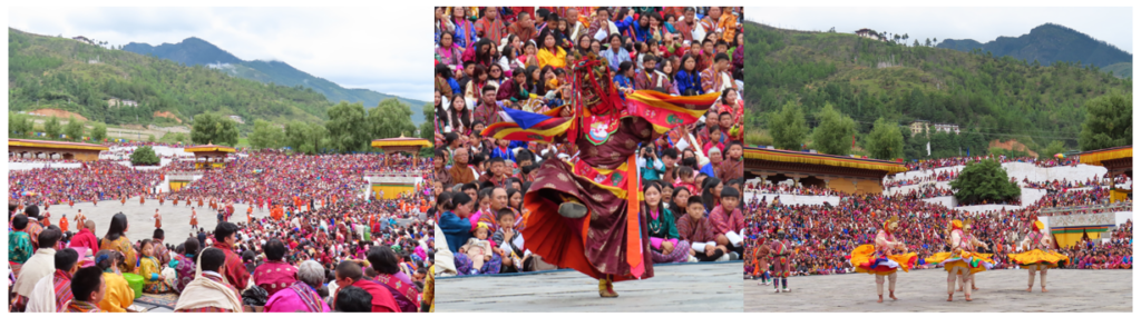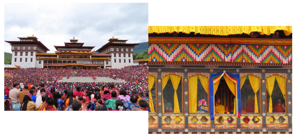 Vandaag wordt een bijzondere dag, wij gaan naar het Timphu Tshechu festival. Het festival duurt in totaal drie dagen en wij gaan er op de tweede dag heen. Het festival wordt voorafgegaan door dagen en nachten van gebed en rituelen om de goden aan te roepen. De maskerdansen worden uitgevoerd om de toeschouwers te zegenen, hen de Boeddhistische dharma te leren, hen te beschermen tegen ongeluk en het kwaad uit te drijven. Het is een jaarlijkse bijeenkomst waar de Bhutanezen op hun netst gekleed heen gaan om te vieren, de zegeningen te ontvangen en te bidden voor gezondheid en geluk.