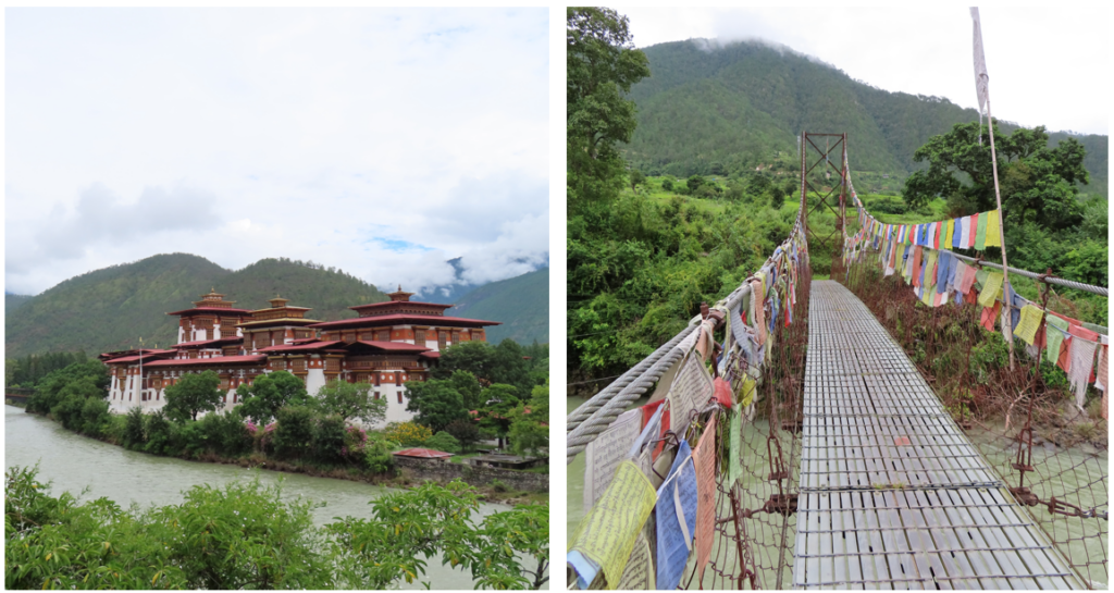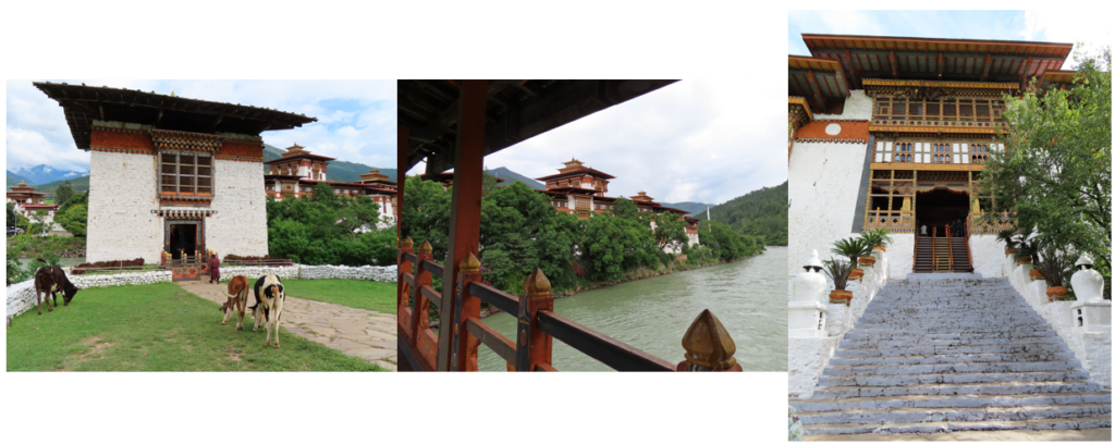 De middag was gereserveerd voor een bezoek aan de Punakha Dzong. De huidige Dzong werd afgebouwd in 1638, later werden de kapel, tempels en andere verblijven gebouwd. Door een aantal branden werden delen van het gebouw verwoest en weer opgebouwd. De Dzong wordt door de Bhutanezen gezien als het mooiste gebouw van hun land. De Punakha Dzong is de tweede Dzong die gebouwd werd. Tot midden jaren 50 zat de regering hier en alle vijf de koningen zijn hier gekroond. Via de Suspension Bazam brug kom je op het complex, de brug is in 2008 herbouwd nadat de brug uit 1958 door een overstroming was verwoest. De Dzong zelf betreed je met een steile houten trap omhoog.