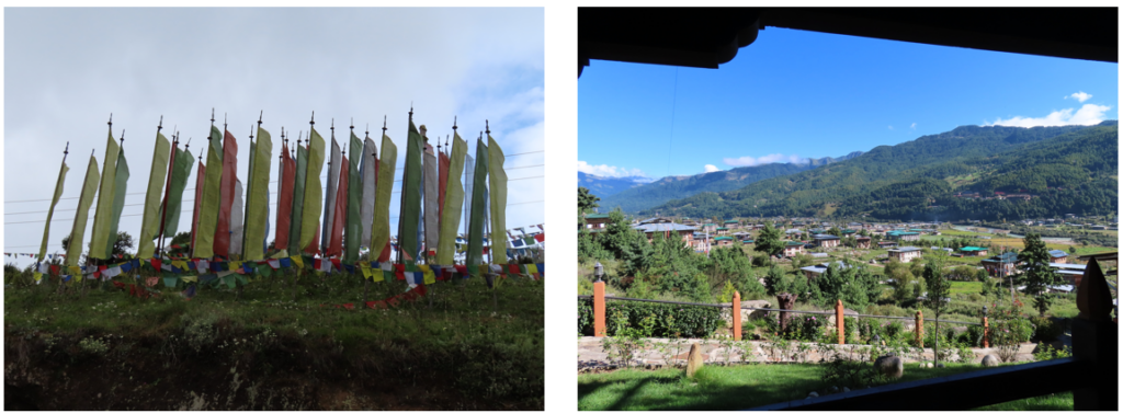 Na deze leuke en interessante stops reden wij nog een klein half uurtje verder naar ons Hotel Sonamgang in Punakha. De helling voor het hotel was ietwat steil en er moest een behoorlijke dot gas gegeven worden, de bus had het moeilijk maar met de rijvaardige kunsten van Kharma hebben wij het gered. Het hotel ligt wat afgelegen en biedt daarmee een mooi uitzicht over de vallei.