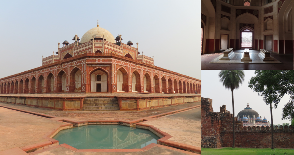 Onze volgende stop was wederom een tempel, ditmaal Humayun’s tombe. Het is een groot complex met meerdere tempels, Een mooie poort leidt langs een vijver naar de grote tempel. In de grote tempel in het midden ligt Humayun zelf begraven, de tempel werd gebouwd door zijn vrouw in 1556. Daarna werden er nog vele keizers begraven in de omringende tempels. De tempels zijn gebouwd met rode zandstenen en witgeverfde nisjes. Door de mozaïek ramen schijnt het licht mooi op de stenen kisten. De ene tempel is iets beter onderhouden dan de andere. In mijn uppie over het complex rondgezworven en dat ging prima, het was bijna tijd en ik liep alvast naar de poort. Ik miste de vijver en was even in de veronderstelling dat ik al verder op het pad was, niet dus! Ik stond bij de verkeerde poort…… Op een holletje in de zinderende hitte en een stromende Ganges op mijn rug weer naar het midden gelopen en vanaf daar via de bekende vijver naar de hoofdpoort. Ja, ja, dit keer was ik de laatste, sorry!