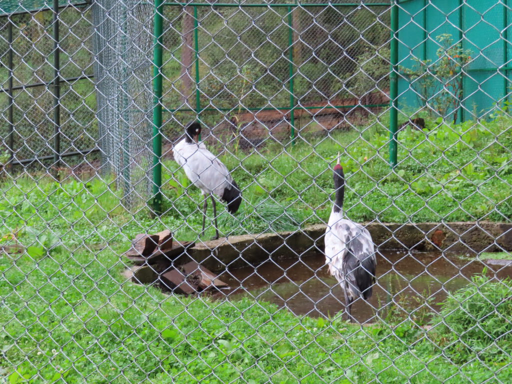 Vandaag is het een “wij doen het rustig aan dag” en daarmee hadden wij na een onrustige nacht, de klap was niemand ontgaan, alle tijd om rustig op te starten. Alleen een bezoek aan de volière met twee gewonde zwartnet kraanvogels en een klooster. De vallei staat bekend om de zwartnek kraanvogels die elk jaar vanuit Nepal komen om hier te overwinteren. Het moet een prachtig gezicht zijn, al die kraanvogels in het dal. Wij zijn net even een maandje te vroeg en moeten het dus doen met de gekooide zwartnek kraanvogels.